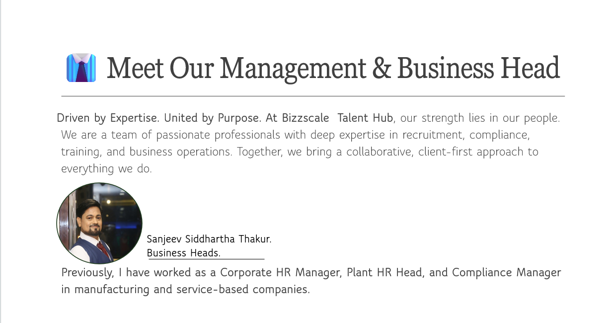 At Bizzscale Talent Hub, our strength lies in our people. Our diverse team of professionals brings together deep industry knowledge, strategic thinking, and a passion for helping businesses grow. From legal minds to finance experts and business consultants, we work collaboratively to deliver smart, scalable solutions tailored to your goals.